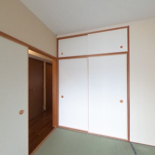 和室の収納が大きい(確度92%):壁一面に天袋付きの押入れ収納があり、布団や季節物をまとめてしまえそうです。