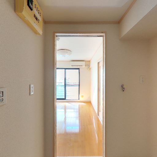 玄関・廊下の明るさはやや控えめ(確度72%):玄関側は採光が少なく、奥の居室に比べて暗め。