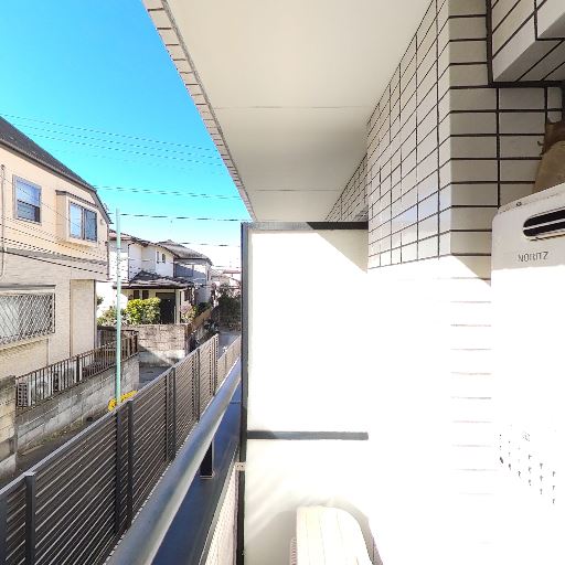 日当たりは良好そう(確度80%):バルコニー内に強い直射日光が差し込んでいる。