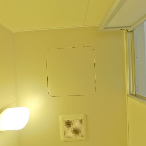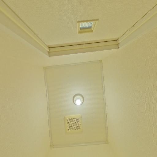 換気設備と照明(確度76%):天井付近に換気口があり、壁付け照明も確認できる。