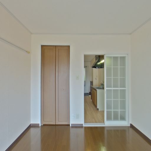 独立したキッチンへの動線(確度82%):ガラス引き戸の先にキッチンが見えるため、居室と分けられる。