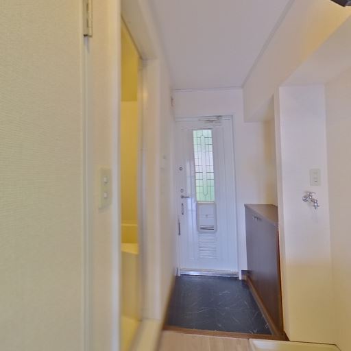 玄関との距離感(確度72%):キッチンから玄関が近く、土間と下駄箱が見える。匂い移りや動線の重なりが起きやすい配置。