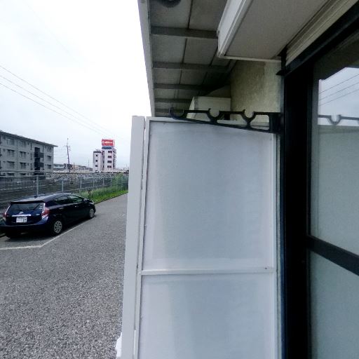 物干し金具あり(確度83%):窓外の庇下に物干し用アームが左右に設置されている。