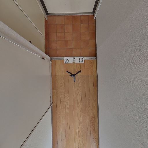 • 床の切り替えと土間スペース(確度86%):玄関はタイル張りの土間で、室内側はフローリングに段差で切り替わっている。タイルはオレンジ系で清掃しやすそう。