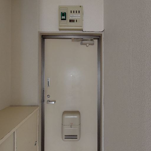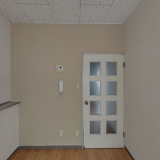 • コンセント・設備スイッチ(確度70%):壁面にインターホンとスイッチ、コンセントが複数確認できる。