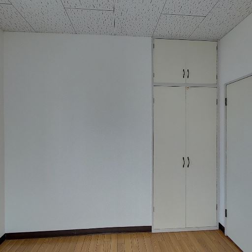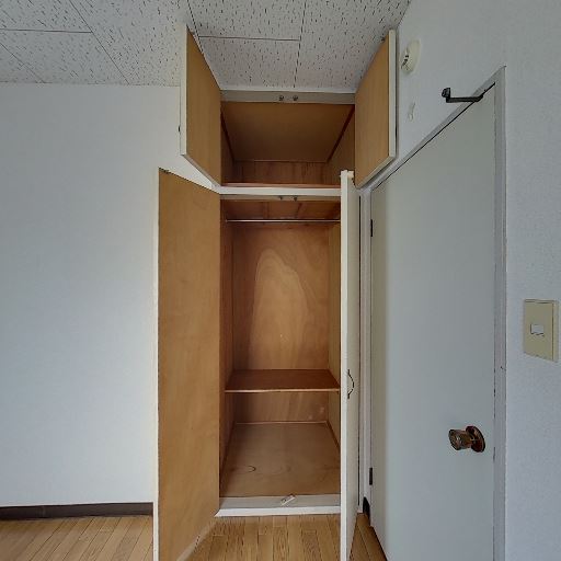• 収納の有無(確度83%):背面側に天井までの造り付け収納がある。上下に扉が分かれており容量は中程度。