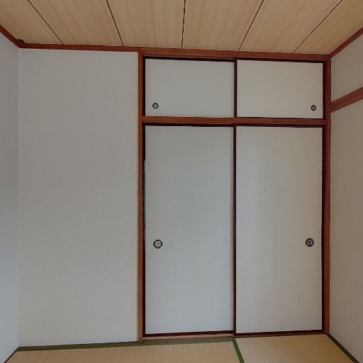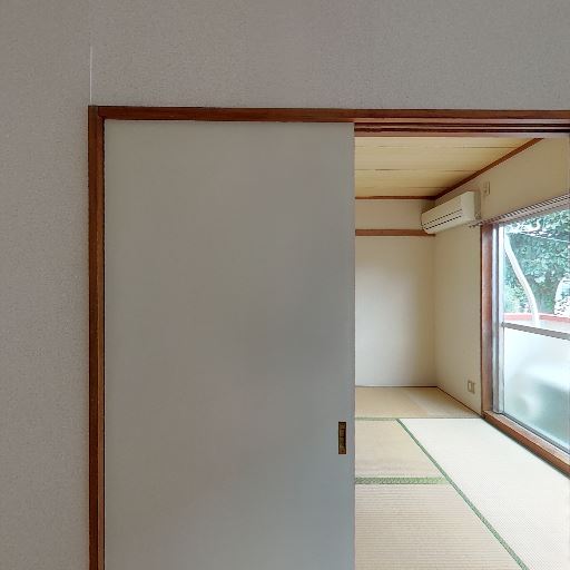• 和室(畳)の居室(確度86%):床は畳で3畳程度の小ぶりな和室。押入れ・天袋付きで収納が確保されている。