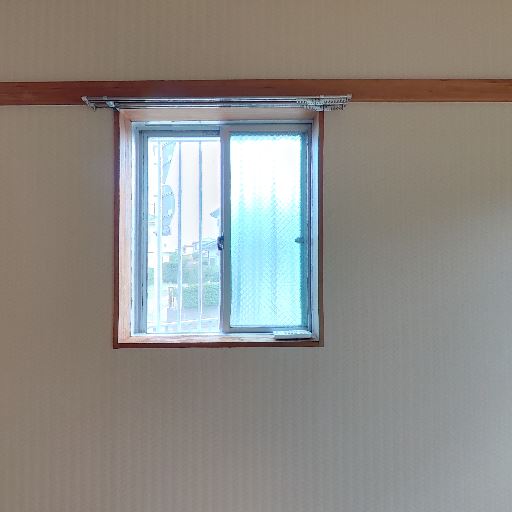 • 採光は小窓2面でほどほど(確度70%):2面に小さめの窓があり、すりガラスと面格子が付いている。直射は強くなさそうだが日中の自然光は入る。