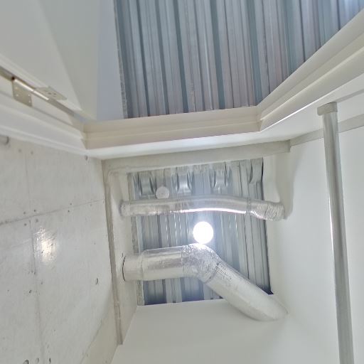 換気設備が見えており湿気対策に期待できる(確度68%):天井付近にダクト配管が複数見えており、この空間に換気設備が通っている可能性が高い。収納空間としては湿気やこもり対策に一定の期待が持てる。