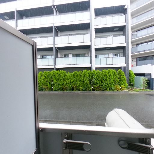 外部の見通しはあるが眺望は限定的(確度90%):手すり越しに外の建物や植栽は見えるものの、目の前に別棟と塀があり、抜け感のある眺望とは言いにくい。
