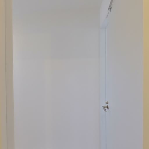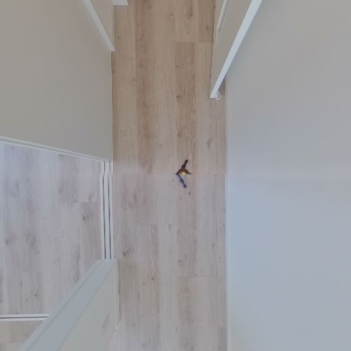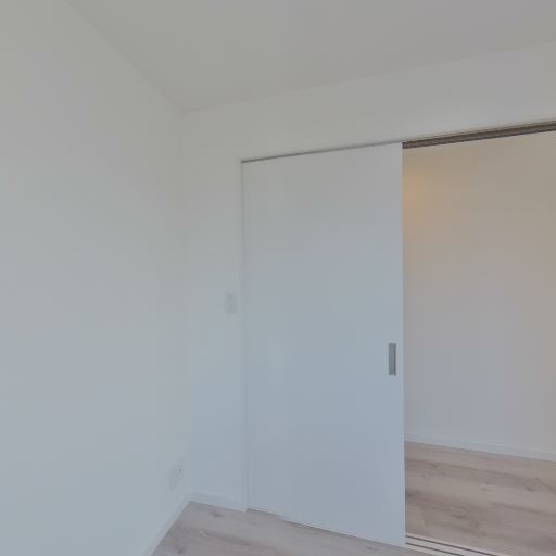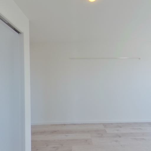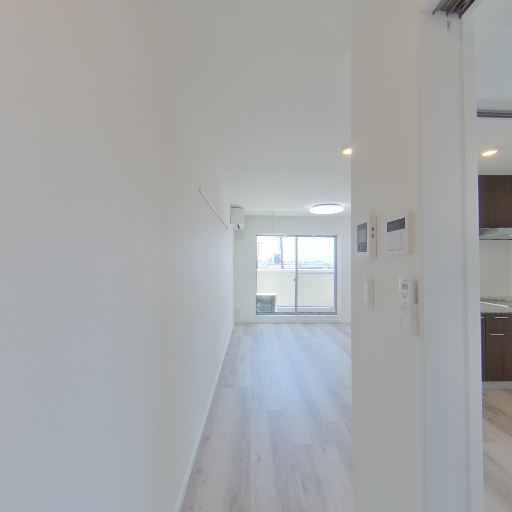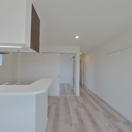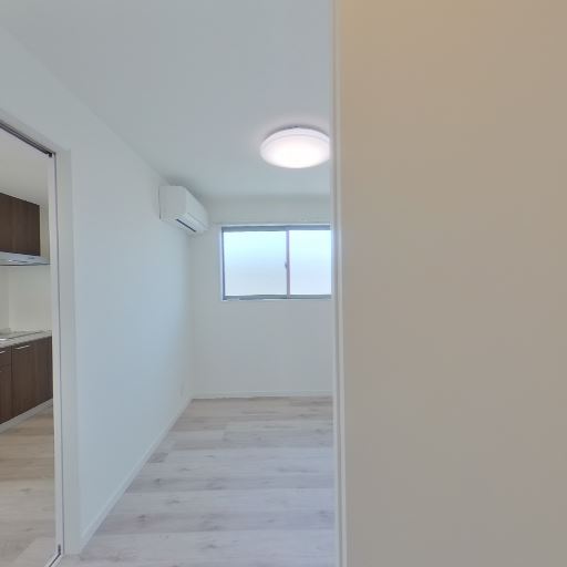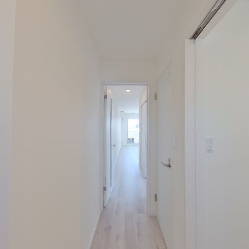 全体的に明るく清潔感がある(確度91%):壁・天井・建具が白で統一され、床も淡い木目調で、室内全体に明るく清潔な印象がある。目立つ汚れや大きな傷は画像上では確認しにくい。