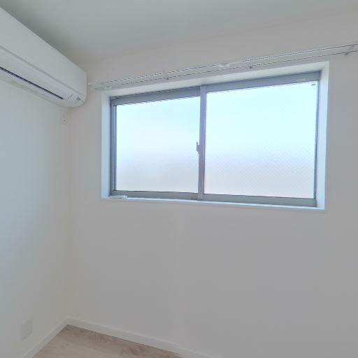 エアコン設置済み(確度95%):居室上部の壁面にエアコンが既に設置されているのが確認できる。