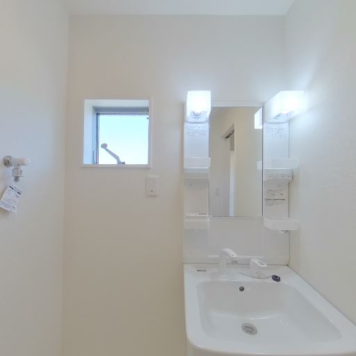 小窓があり換気しやすそう(確度84%):洗面スペース側に小さな窓が確認でき、自然光の取り込みや湿気の排出に役立つ可能性がある。