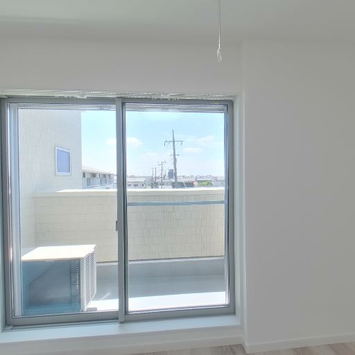 バルコニー付きで外干しや換気がしやすそう(確度88%):窓の外にバルコニーが確認でき、洗濯物の外干しや室内の換気動線に役立つと考えられる。