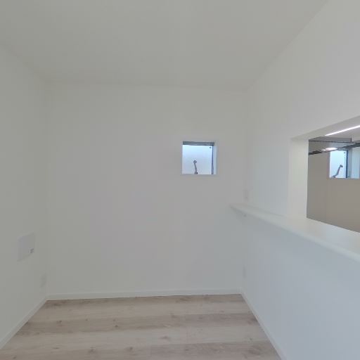 明るく清潔感のある内装(確度90%):白い壁と淡い木目調の床で統一されており、全体として明るく清潔感のある印象を受ける。