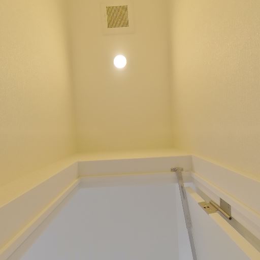 浴室乾燥・換気設備がありそう(確度86%):天井面に換気口が確認でき、浴室内の換気や乾燥機能付き設備である可能性が高い。