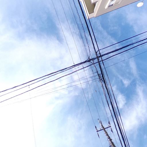 • 電線が多く空の抜けは良いが景観に影響(確度70%):頭上に多数の電線と電柱が走っている。