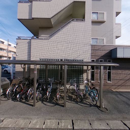 • 駐輪スペースあり(確度86%):右側の建物前に屋根付きの駐輪場と多数の自転車が見える。