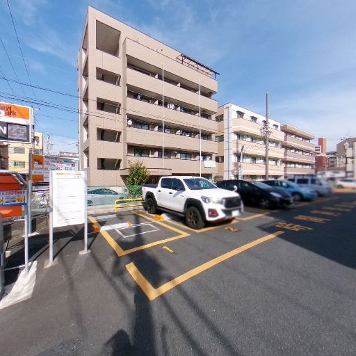 • 駐車場が敷地内にある(確度90%):建物前に区画線が引かれた駐車スペースと精算機が見える。複数台分の月極/来客用と思われる。