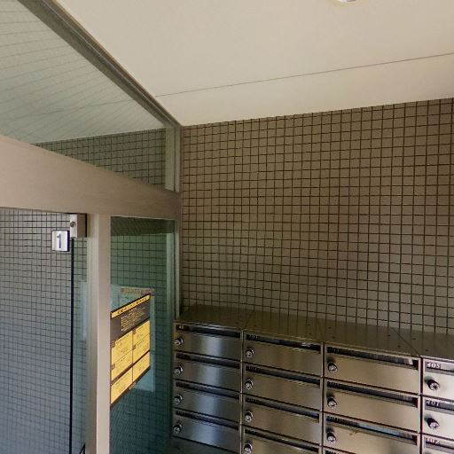 • 共用エントランスの清潔感(確度82%):タイル貼りの壁と床が全体的にきれいで、汚れや破損は見当たらない。