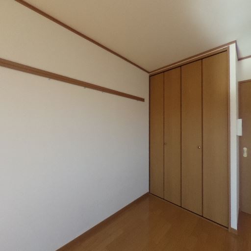 • 収納の充実(確度86%):折れ戸タイプのクローゼットが壁一面にある。