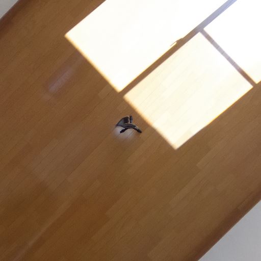 • 採光・明るさ(確度73%):廊下の奥にガラス入りの扉があり、自然光が差し込んで床に反射している。