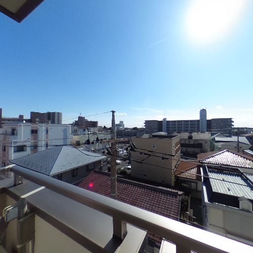 • 眺望・抜け感(確度86%):バルコニーから周囲の建物を見渡せ、前面に大きな遮蔽物が少ない。遠景まで抜けており開放感がある。