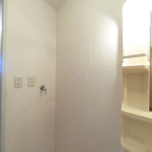 • 室内洗濯機置き場(確度90%):洗濯機パンと給水栓・コンセントが確認できる。