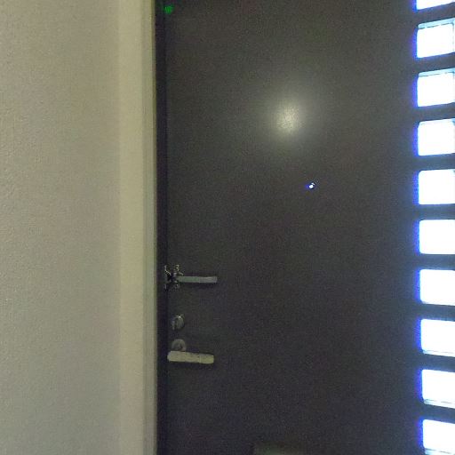 • 採光スリットのある玄関ドア(確度78%):玄関ドアに縦長の採光窓が連なり、昼間は自然光が入る。