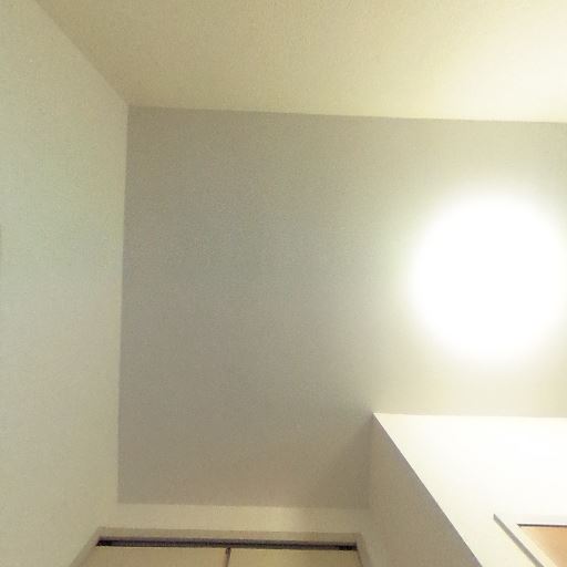 • 天井照明の取付け要(確度84%):天井中央付近に引掛シーリングが見え、照明器具は未設置。