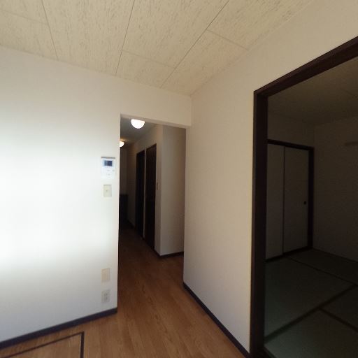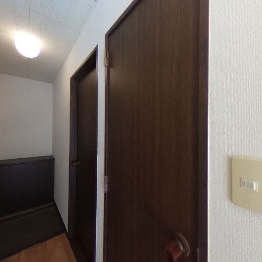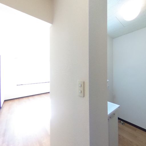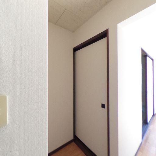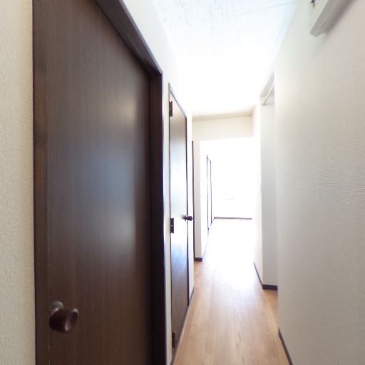 廊下の奥に採光あり(確度73%):玄関から続く廊下の先に強い明るさが見え、居室側に窓があると推測される。