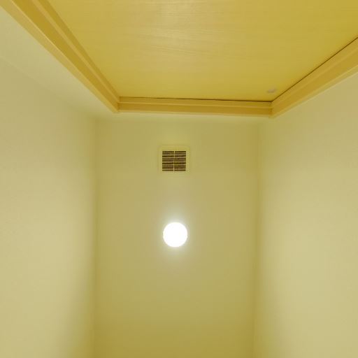 換気設備がある(確度90%):天井付近の壁面に換気口が確認でき、トイレ内のこもりやすい湿気やにおい対策が期待できる。