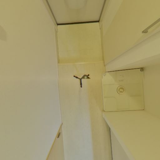 室内洗濯機置き場がある(確度95%):床面に洗濯機パンと給水用と思われる設備が確認でき、室内に洗濯機置き場が設けられていると判断できる。