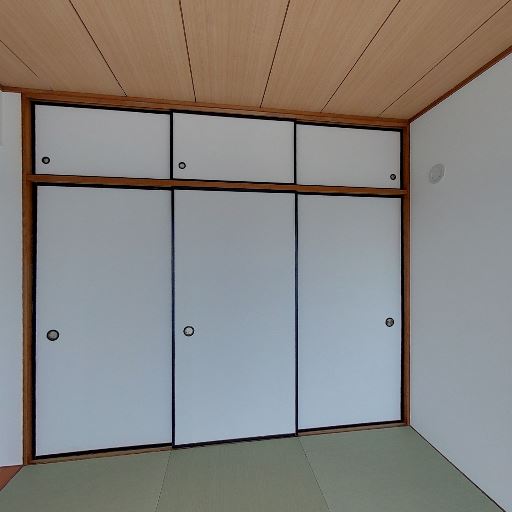 • 押入れ収納が大きい(確度92%):前面に天袋付きの押入れがあり、上下2段に分かれた十分な収納容量がありそうです。布団や季節物の収納に向く和室仕様です。