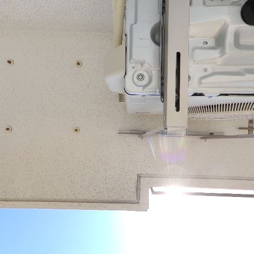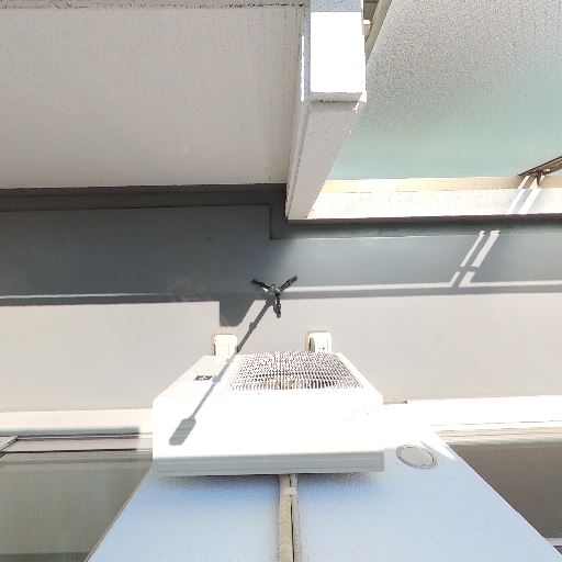 • エアコン室外機が上部に設置されている(確度89%):室外機が天井付近の金具に吊られており、床面を占有していない。