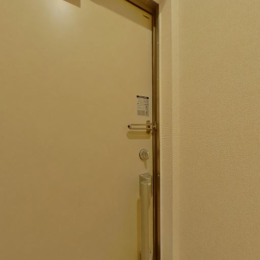 • 玄関ドアに簡易ロックがあり防犯面に一定の配慮(確度79%):玄関ドアに通常の施錠とは別に補助的なロック金具が見える。防犯性への配慮がうかがえる。