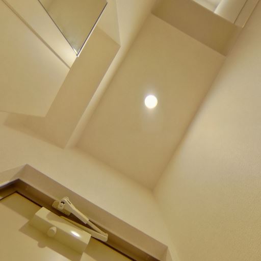 • トイレ内は明るく清潔感のある内装(確度87%):白系の壁と天井、ダウンライト照明により、空間全体が明るく見える。目立つ汚れも画像上は確認しにくい。