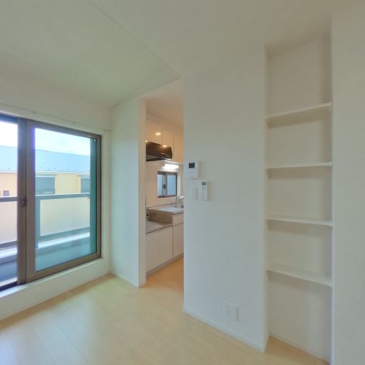 • 内装は比較的きれいで明るい印象(確度78%):白い壁と明るい木目調の床で統一されており、目立つ大きな傷や強い汚れは画像上では確認しにくい。