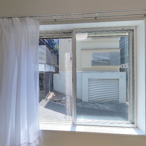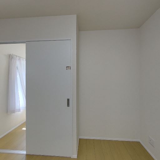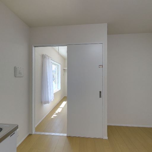 採光面は隣室側に窓(確度72%):引き戸の先の部屋にカーテンが下りた窓が見える。現在の部屋自体には窓が写っていない。