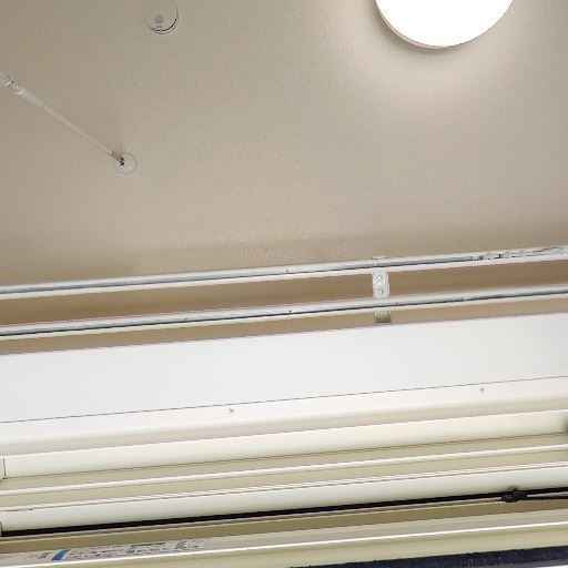 室内干し用の天井金具(確度78%):天井に物干しポール用の受け金具が2カ所見える。