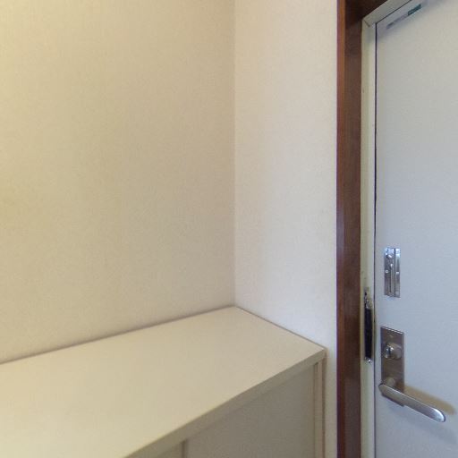 • 靴収納(下駄箱)がある(確度86%):玄関横に腰高の収納が設置されている。