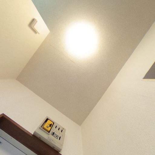 • 天井照明あり(確度83%):天井中央にシーリングライトが設置されている。