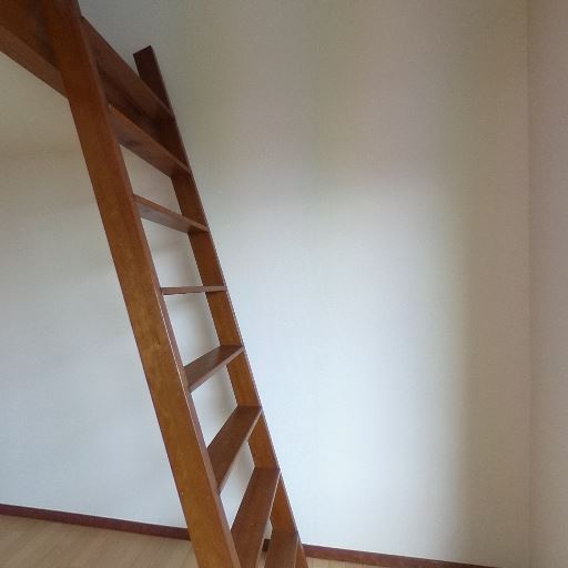 • ロフト付きのはしご(確度86%):木製のはしごと上部にロフトスペースが見える。天井が高めで空間を有効活用できる造り。