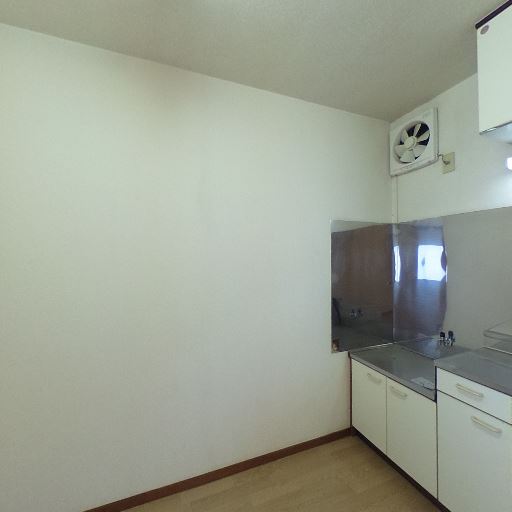 • キッチン設備のコンパクトさ(確度78%):単列の流し台・コンロスペースで、吊戸棚とレンジフード(換気扇)がある小型キッチン。
