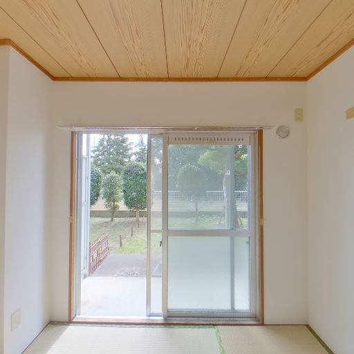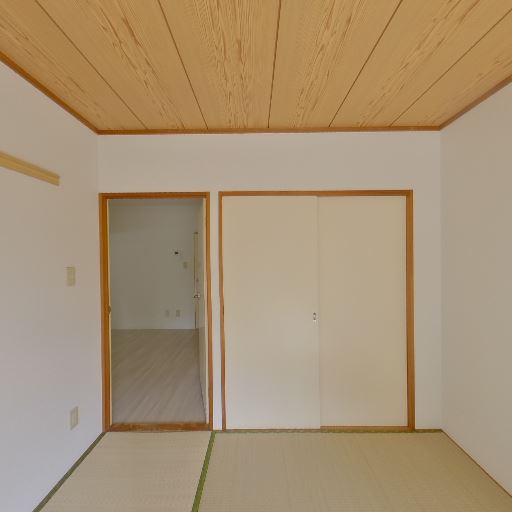 和室(畳)と引き戸収納(確度86%):畳敷きの和室で、壁面に押し入れと思われる引き戸収納がある。木目天井で和テイストが統一されている。