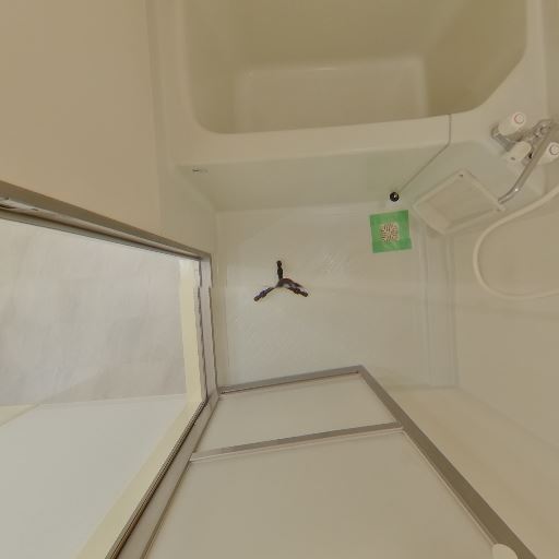 ユニットバスで清潔感あり(確度78%):白基調のユニットバスで、壁や床に大きな汚れやカビは見当たらない。