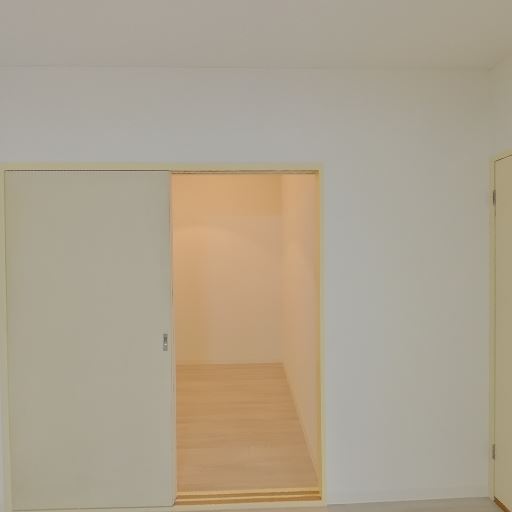 収納または小部屋の存在(確度71%):引き戸の先に奥行きのあるスペースがあり、収納やワークスペースとして使えそう。