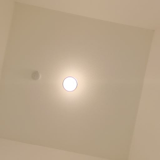 天井設備(確度80%):天井に円形のシーリングライトと小型の火災報知器らしき機器が見える。