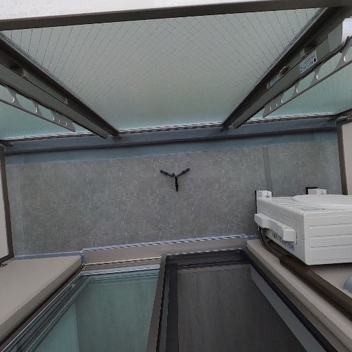 屋根付きで雨天時も干しやすい(確度74%):バルコニー上部に深い庇があり、雨の吹き込みをある程度防げる。