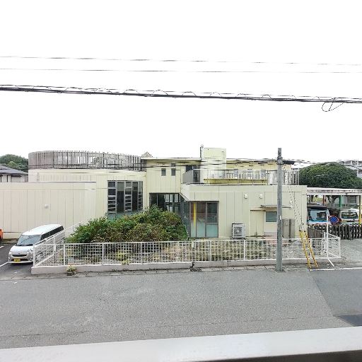 眺望・前面の抜け(確度70%):前面は低層の施設・駐車場で、建物との距離が取れているため圧迫感は少ない。